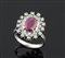 Anello in oro bianco a margherita centrato da rubino naturale ovale per ct...