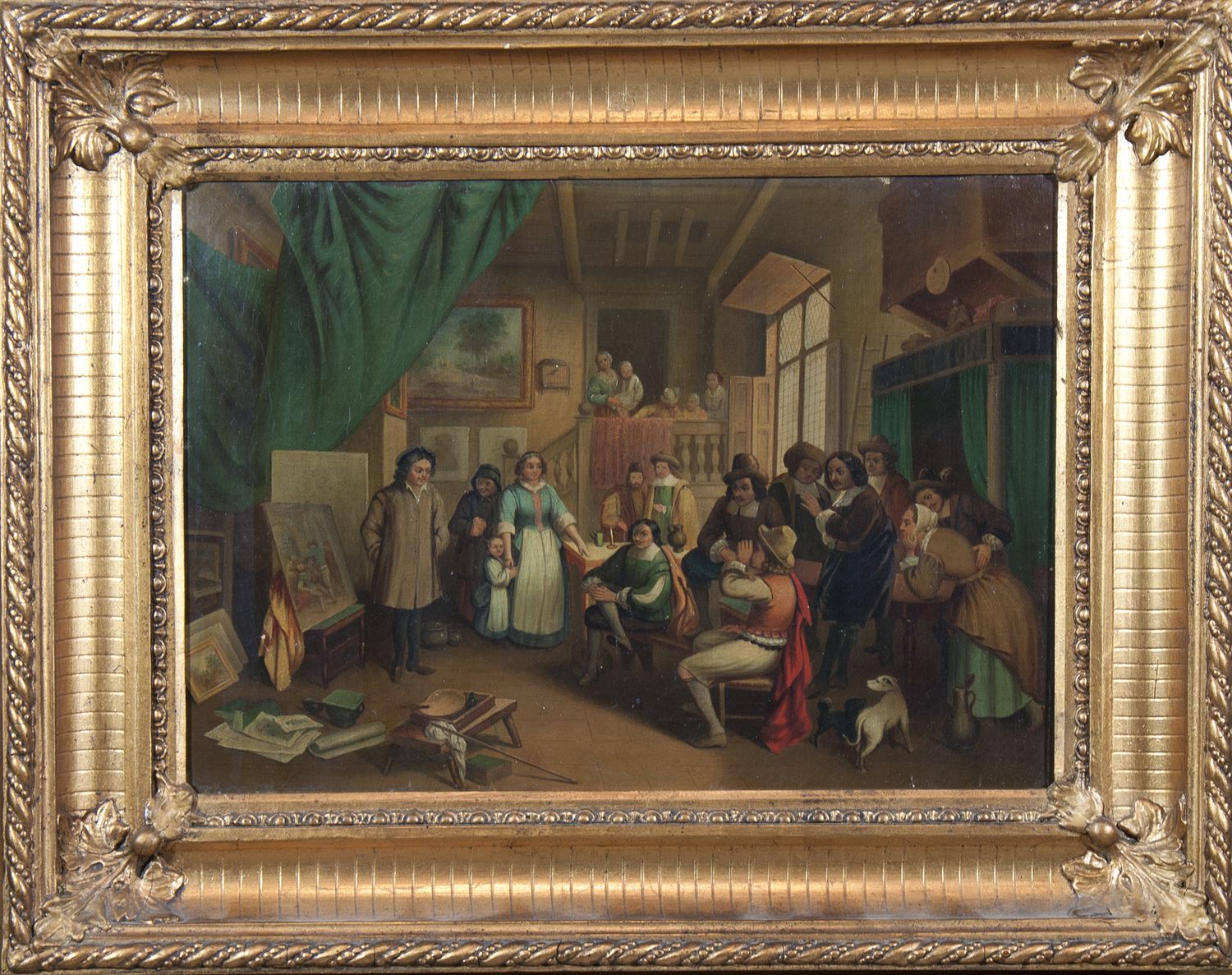 Pittore del XIX secolo "Scena in un interno" cm. 27x39 - olio su tela