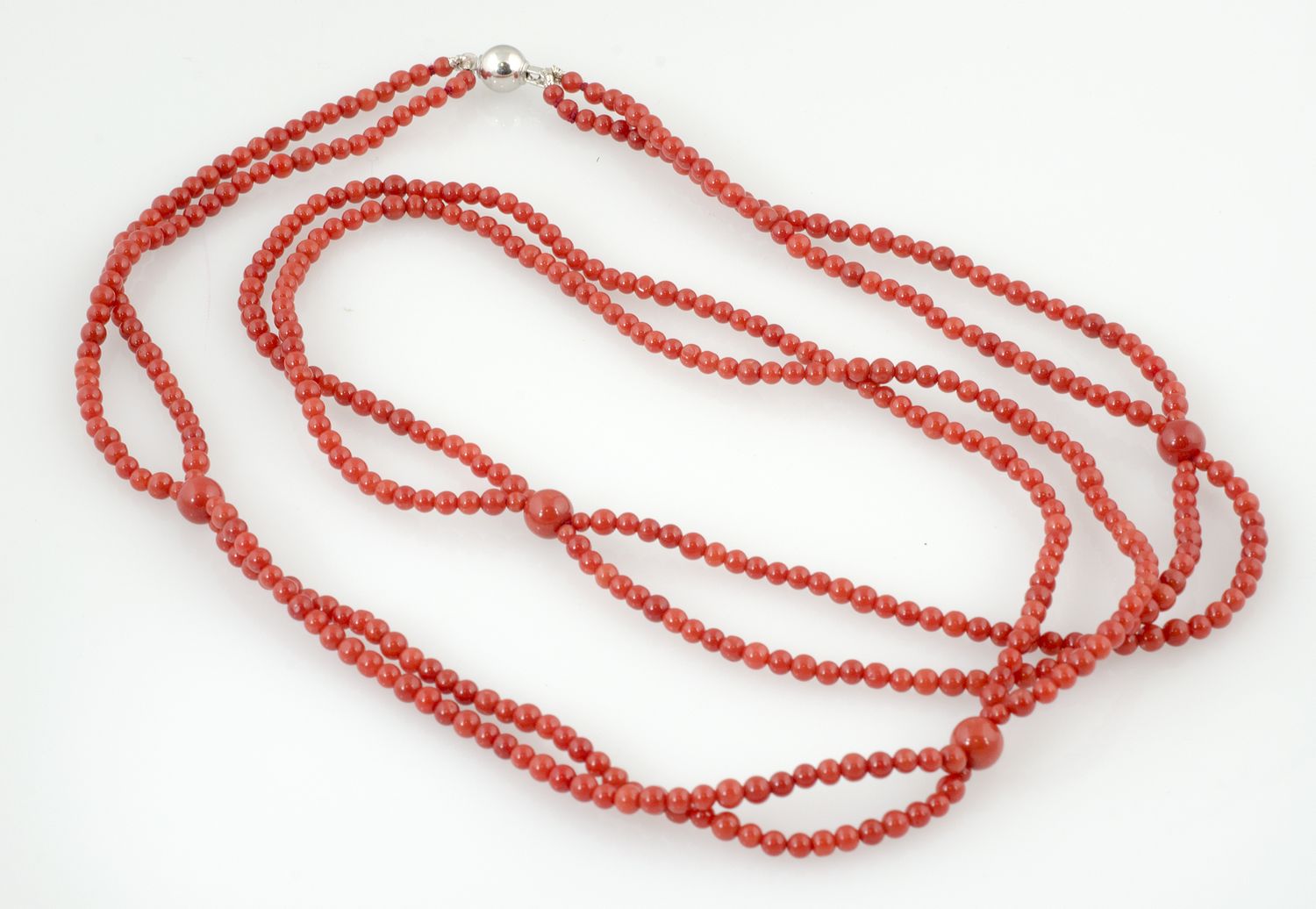 Collana doppio filo di corallo con chiusura in oro