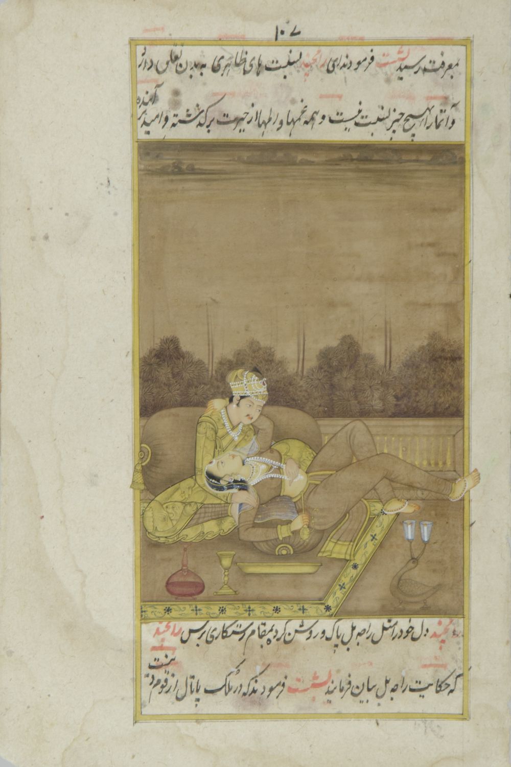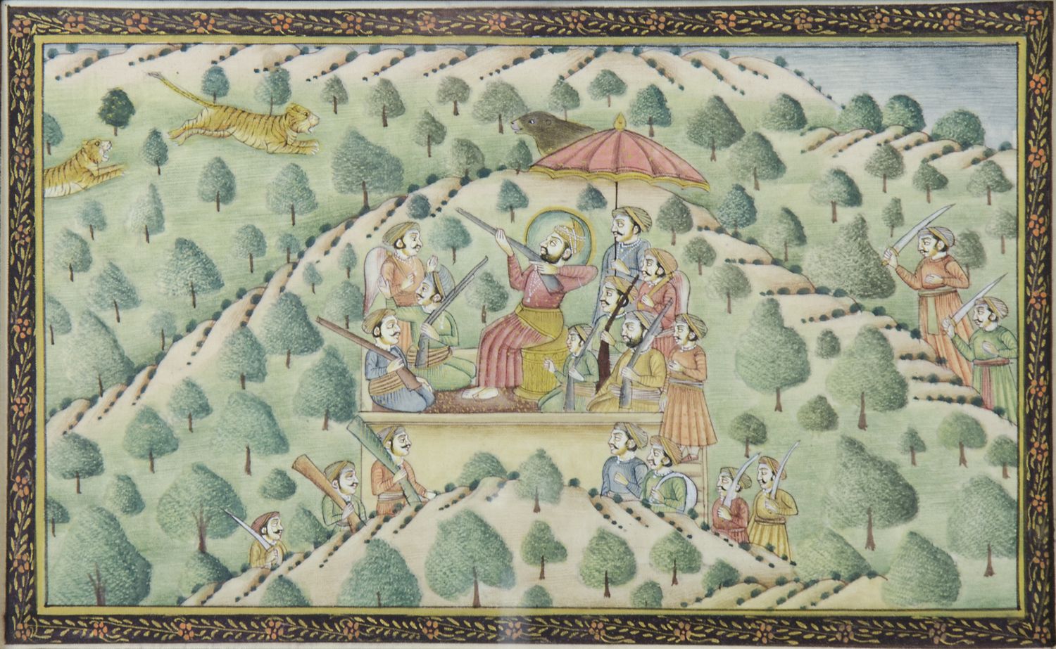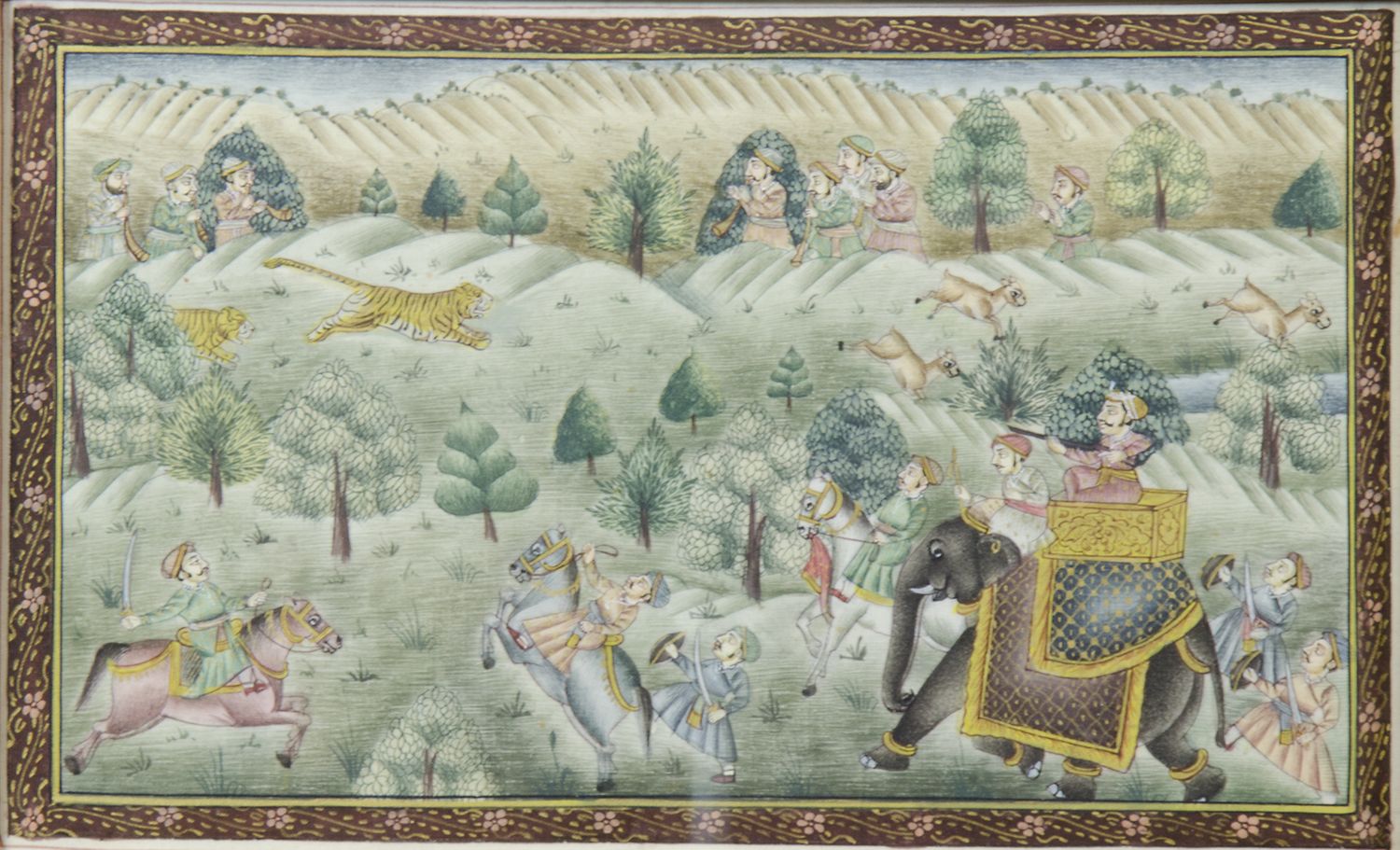Lotto di 4 piccoli dipinti indiani incorniciati.