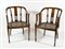 Coppia di poltroncine a pozzetto con schienale intagliato.