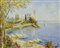 Roda "Castello di Miramare" cm. 24x28 - olio su cartone Firmato b. a s.