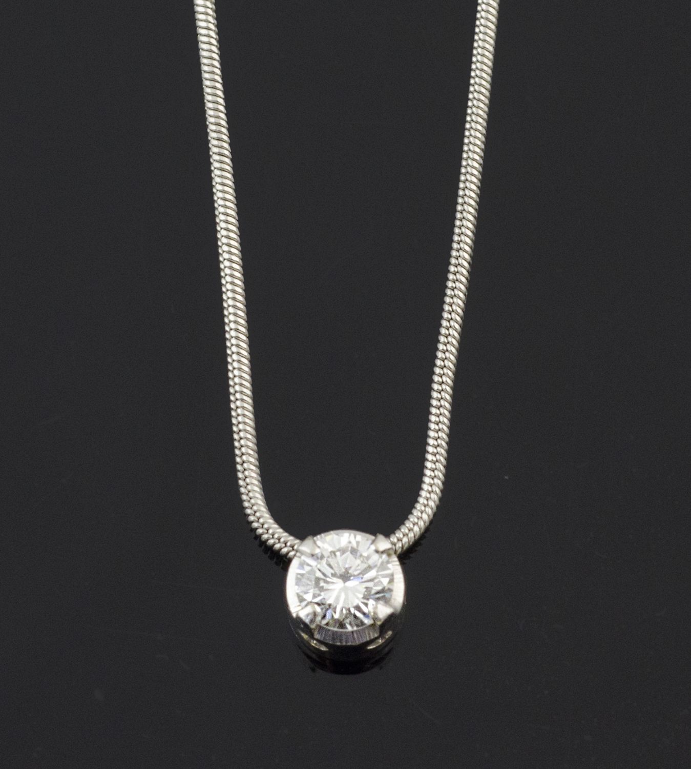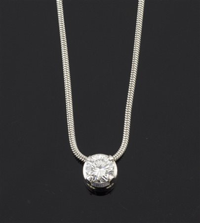 Catena in oro bianco a coda di topo con diamante taglio brillante per ct 0,35, Purezza IF, colore F, firmata Princess Damiani