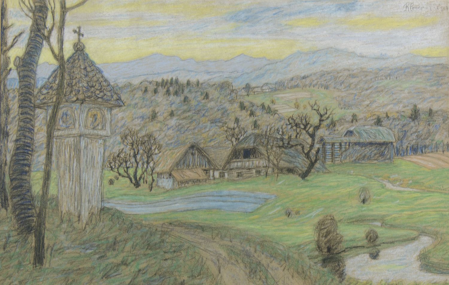 Fran Klemencic 1880-1961 "Paesaggio sloveno" cm. 31x48 - tecnica mista Firmato alto a d. e datato 1919.