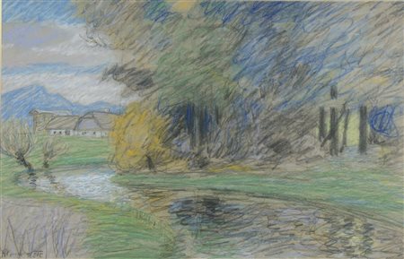 Fran Klemencic 1880-1961 "Paesaggio" cm. 31x48 - tecnica mista Firmato b a s.