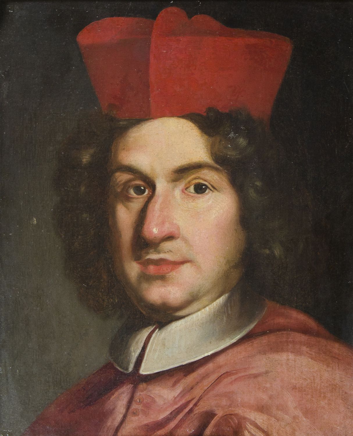 Maestro romano del XVII secolo "Ritratto di Cardinale" cm. 46x37 - olio su tela foderata Al retro compare la scritta "Carlo Maratta (attr.) da Federico Zeri 22/10/1990 comunicazione telefonica".