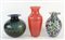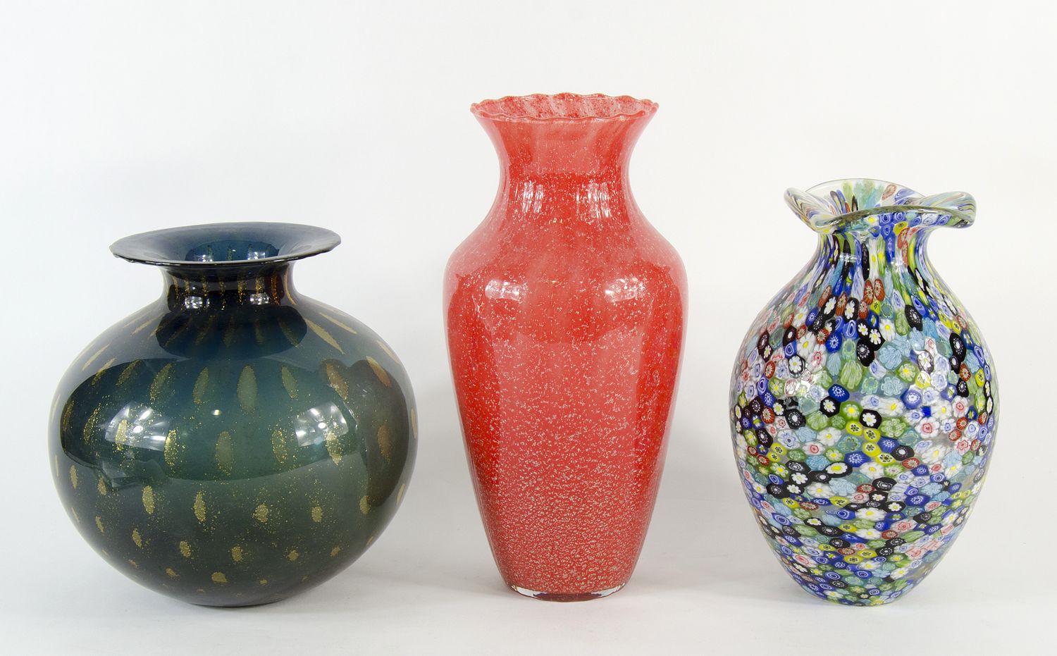 Lotto composto da 3 vasi in vetro di Murano. H. max cm. 32,5.