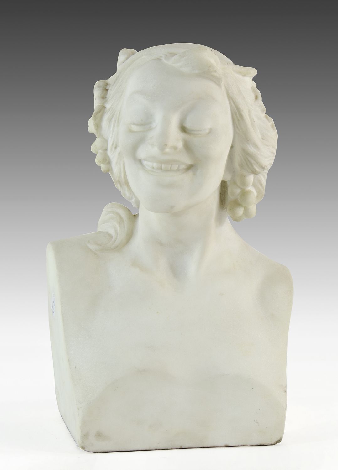 Scultura in marmo bianco raffigurante busto di donna. H. cm. 33.