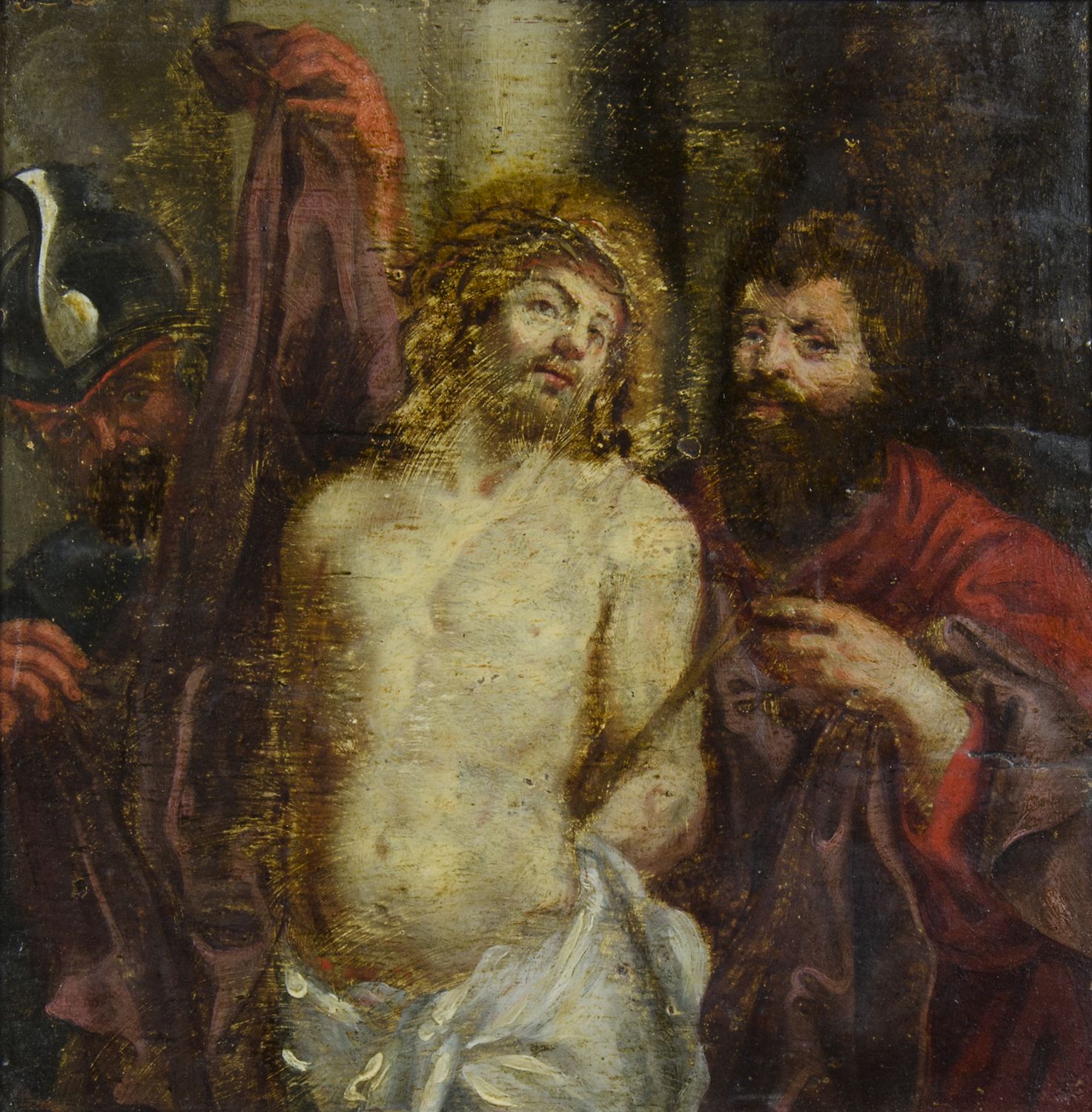 Maestro del XVII secolo "Cristo alla colonna" cm. 27x27 - olio su tavola...