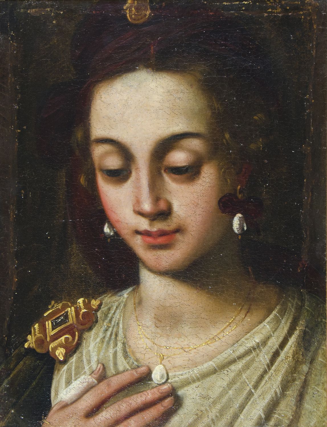 Maestro del XVII secolo "Figura di donna" cm. 45x33 - olio su tela foderata