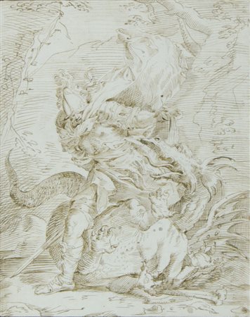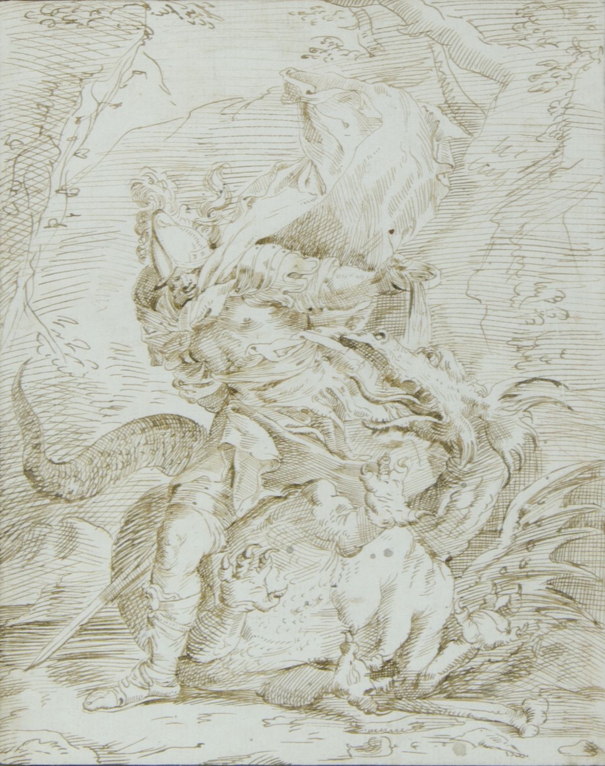 Da Salvator Rosa "Giasone ed il drago" cm. 25x20 - disegno a china su carta
