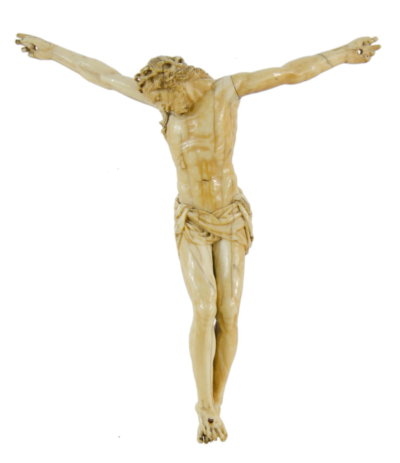 Scultura in avorio finemente scolpito raffigurante Cristo. XVII secolo. H....