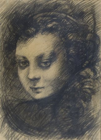 Pietro Annigoni 1910-1988 "La fanciulla" (1958) cm. 35x25 - tecnica mista su carta Firmato b. a d. Al retro etichetta con dati dell'opera.