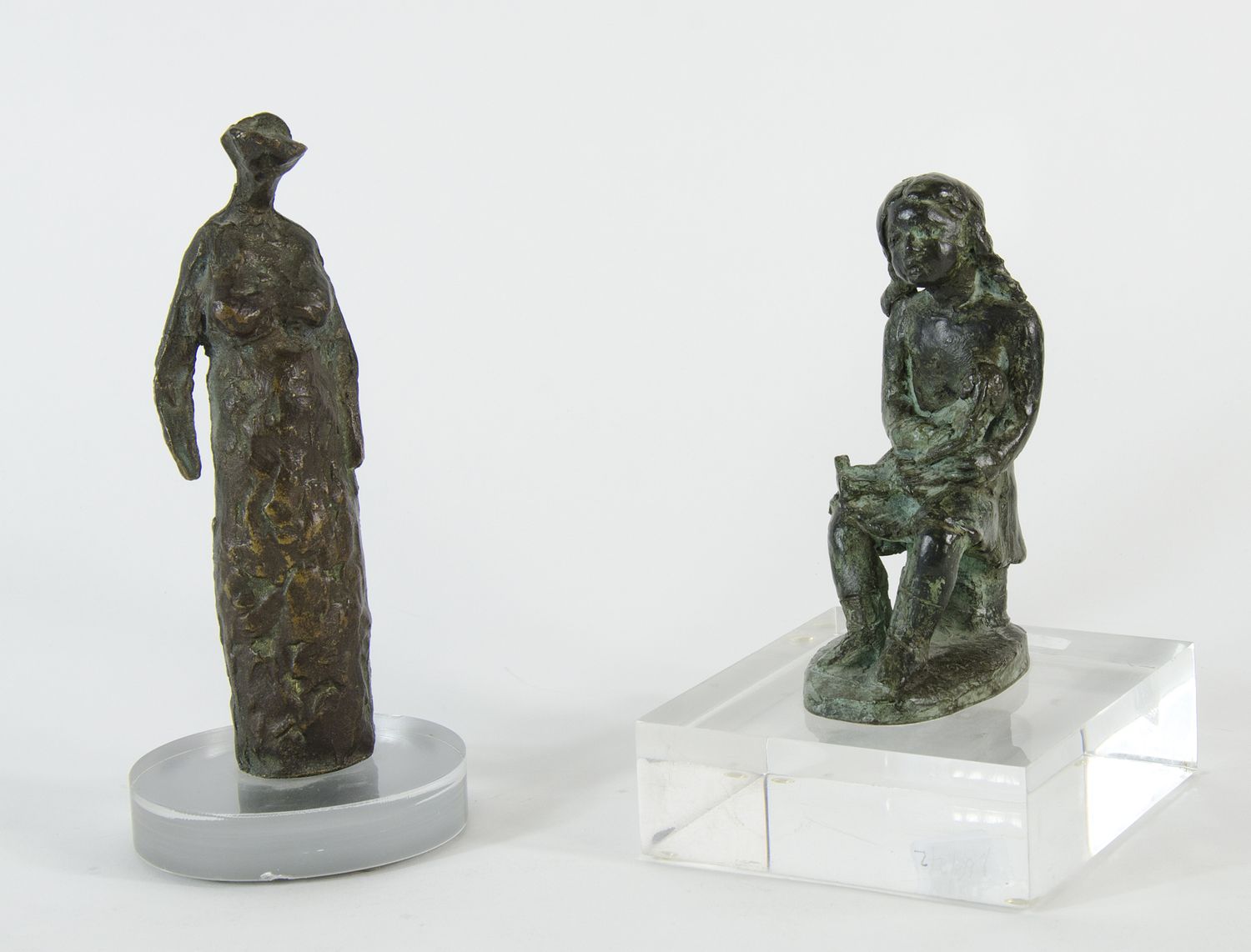 Lotto di 3 piccole sculture in bronzo su basi in plexiglass. H. max cm. 22.