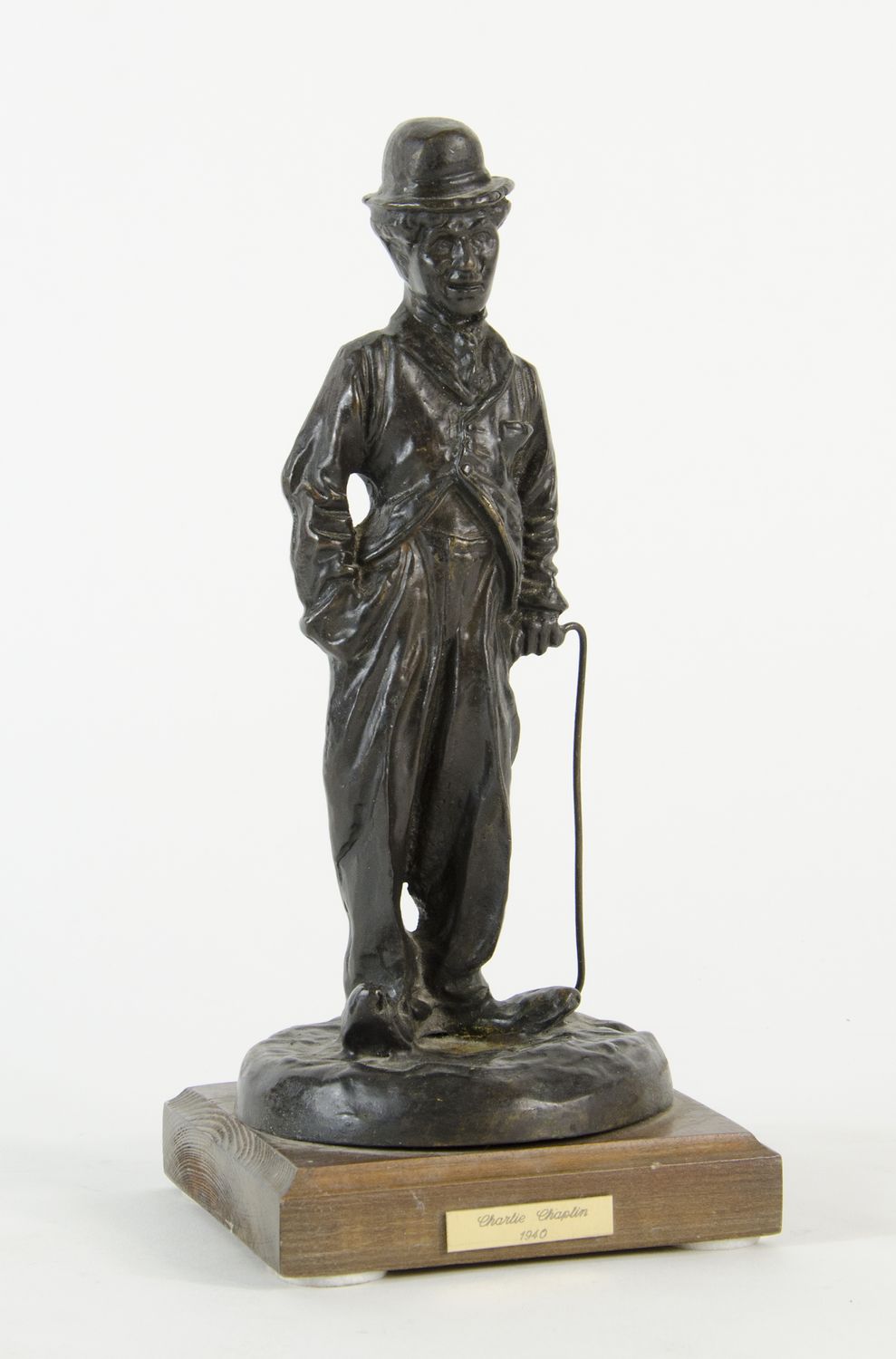 Scultura in bronzo a patina nera raffigurante Charlie Chaplin. H. cm. 24.
