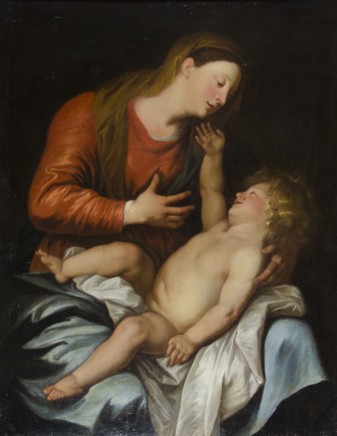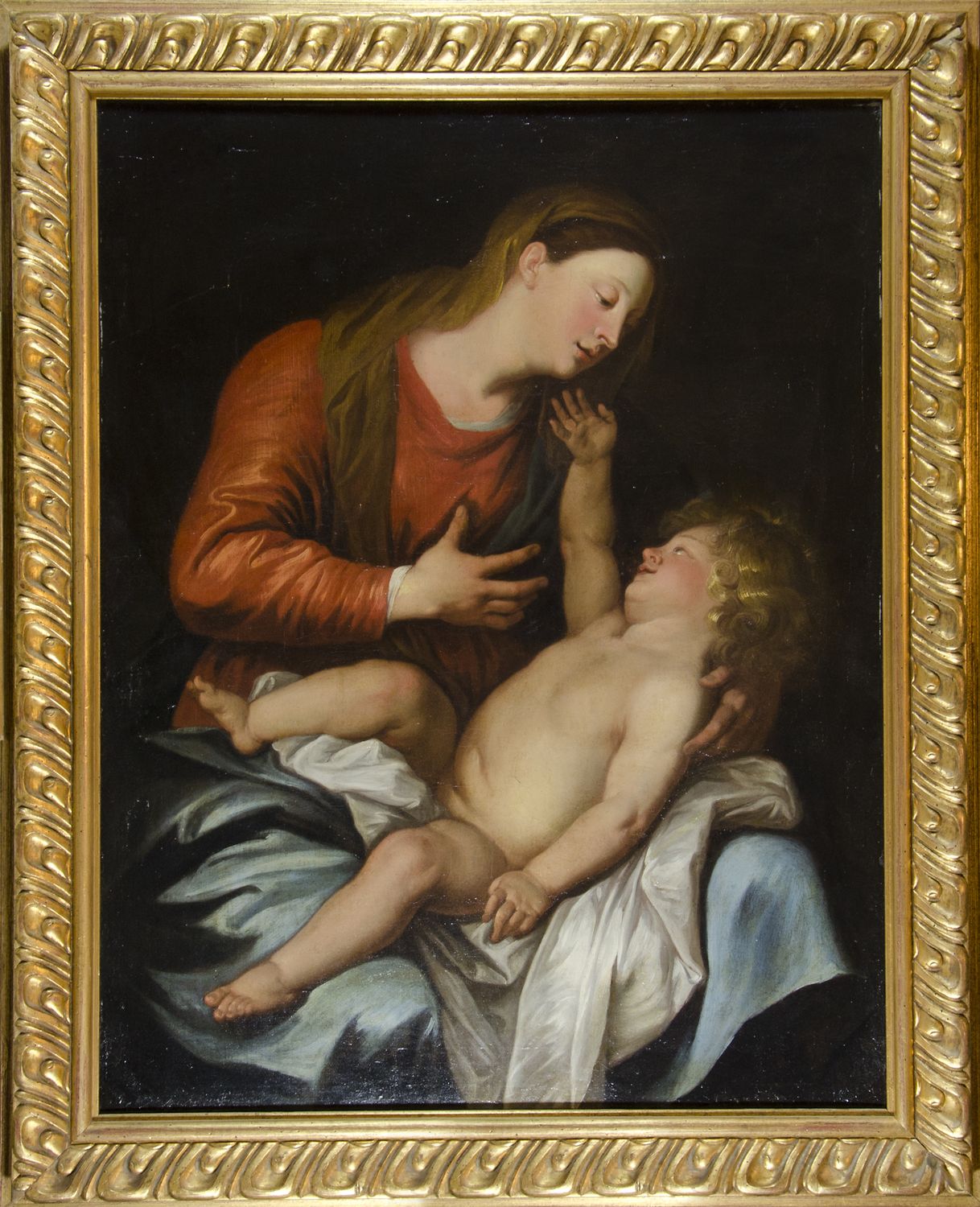 Maestro del XVII secolo da Anthonius Van Dyck 1599-1641 "Madonna con bambino" cm. 110x86 - olio su tela foderata