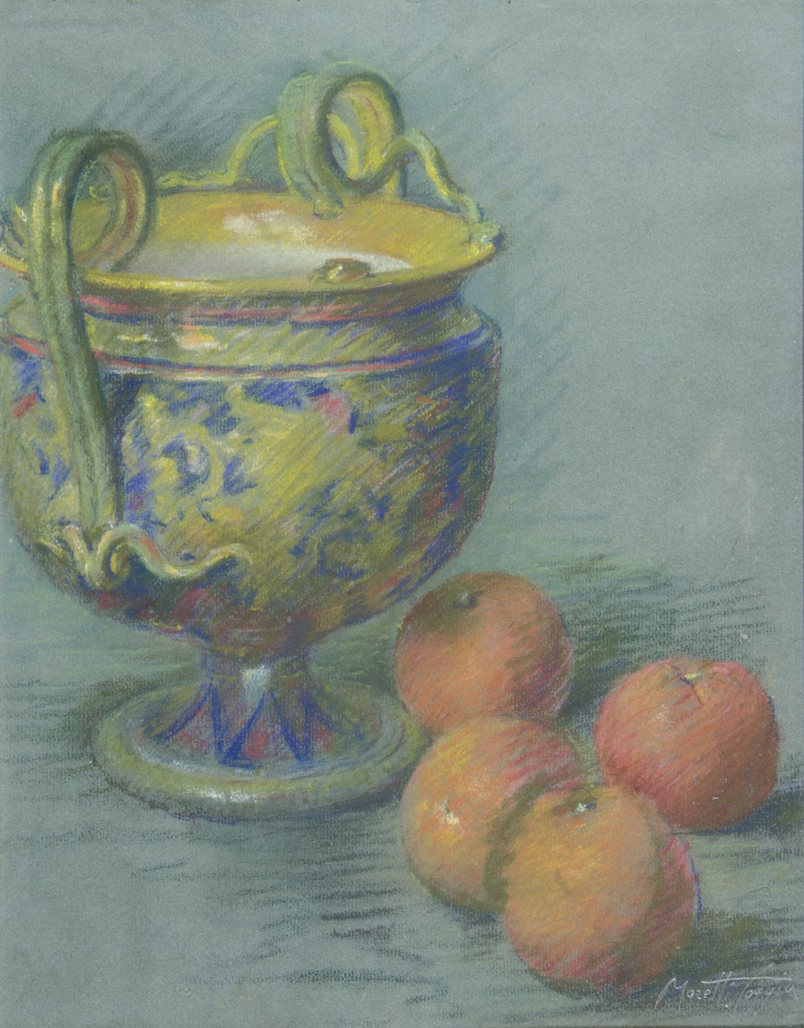 Mario Moretti Foggia 1882-1954 "Natura morta" cm. 45x35 - pastelli colorati Firmato b. a d.
