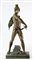 Scultura in antimonio a più colori raffigurante guerriero. H. cm. 80.