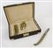 Set di 3 posate da viaggio in metallo dorato inciso decorate con scene di...