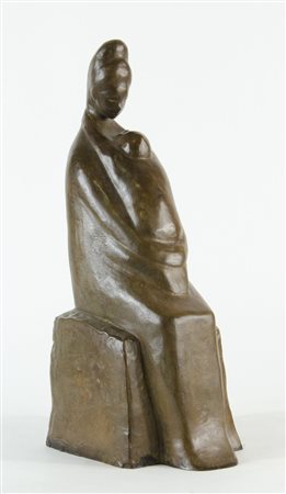 Scultura in bronzo a patina chiara raffigurante Maternità. Firma incisa. H....