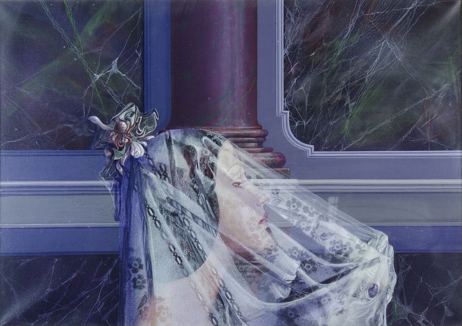 Gigino Falconi 1933 "Figura velata" cm. 50x70 - olio su tela Al retro: firma, titolo e data '71; timbro Galleria Portico Cesena.