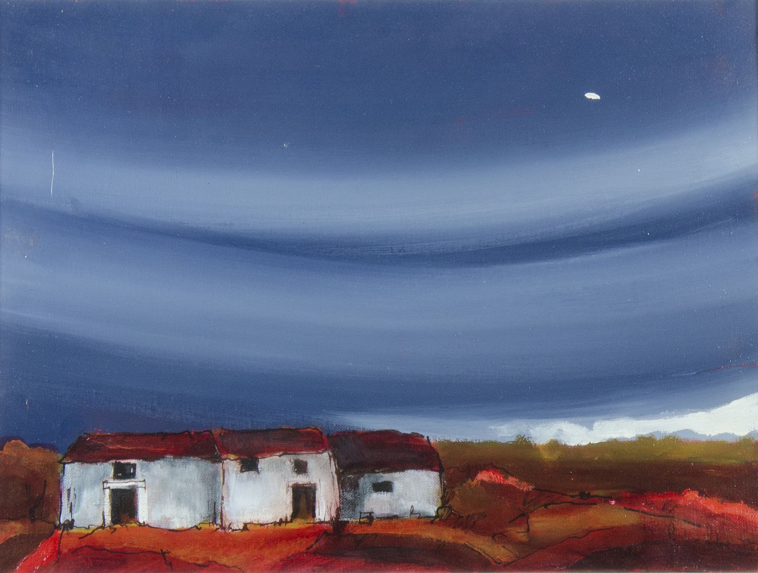 Giorgio Milia 1937-1977 "Case nella notte" cm. 30x40 - olio su tela Firmato b. a d. e datato '77.