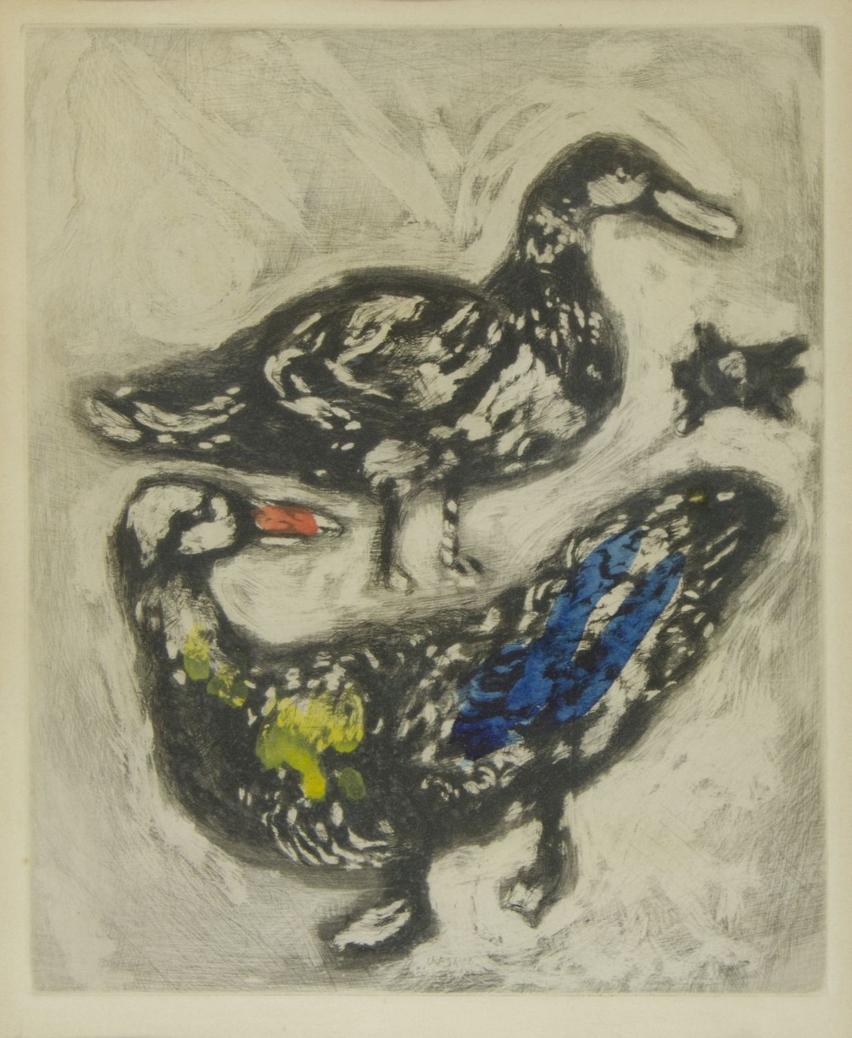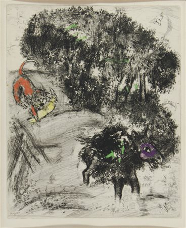 Marc Chagall Witebsk (Russia) 1887-Francia 1985 Lotto di 2 acqueforti a colori firmate in lastra, cm. 39x30.
