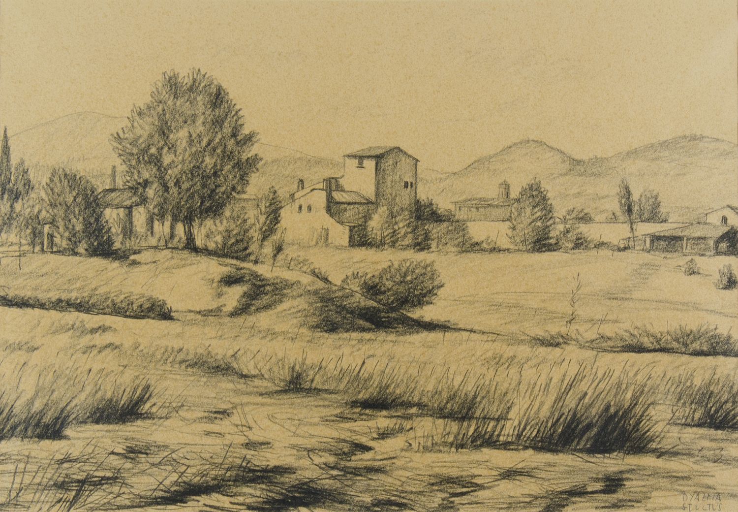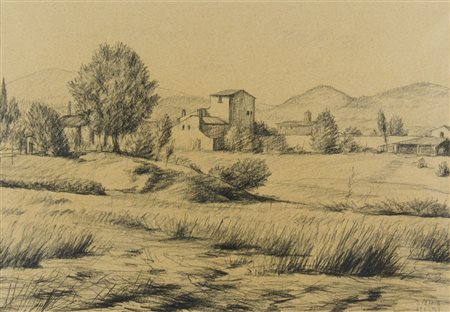 Dyalma Stultus 1901-1977 "Paesaggio" cm. 32x46 - carboncino su carta Firmato b. a d.