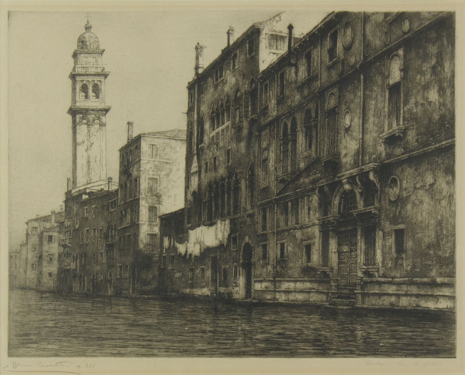 Bruno Croatto Trieste 1875-Roma 1948 "Canale a Venezia" cm. 32x38 - incisione Firmato b. a s.Titolo b. a d. Opera 265.