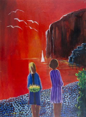 Pittore del '900 "Al tramonto" cm. 80x60 - olio su tela Firmato Fantuzzi b. a s.
