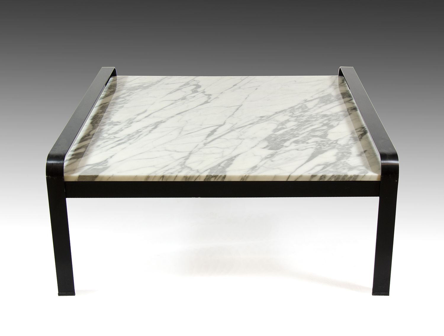 MatteoGrassi: tavolo basso quadrato con piano in marmo. Firmato. cm. 44x100x100.