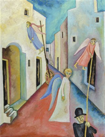 Elettra Metallinò Trieste 1932 "Angeli per le strade" cm. 58x45 - olio su...