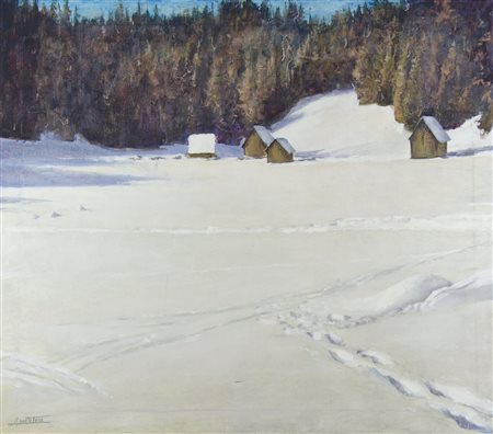 Renato Toso Udine 1936-2014 "Neve a Valbruna" cm. 70x80 - olio su tela Firmato b. a s.