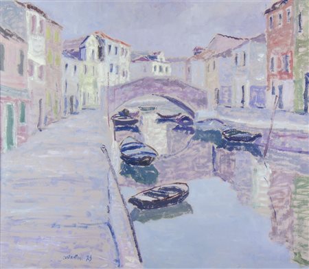 Dino Costantini 1920-2004 "Rio di Burano" cm. 60x70 - olio su compensato Firmato b. a s. e datato '73.