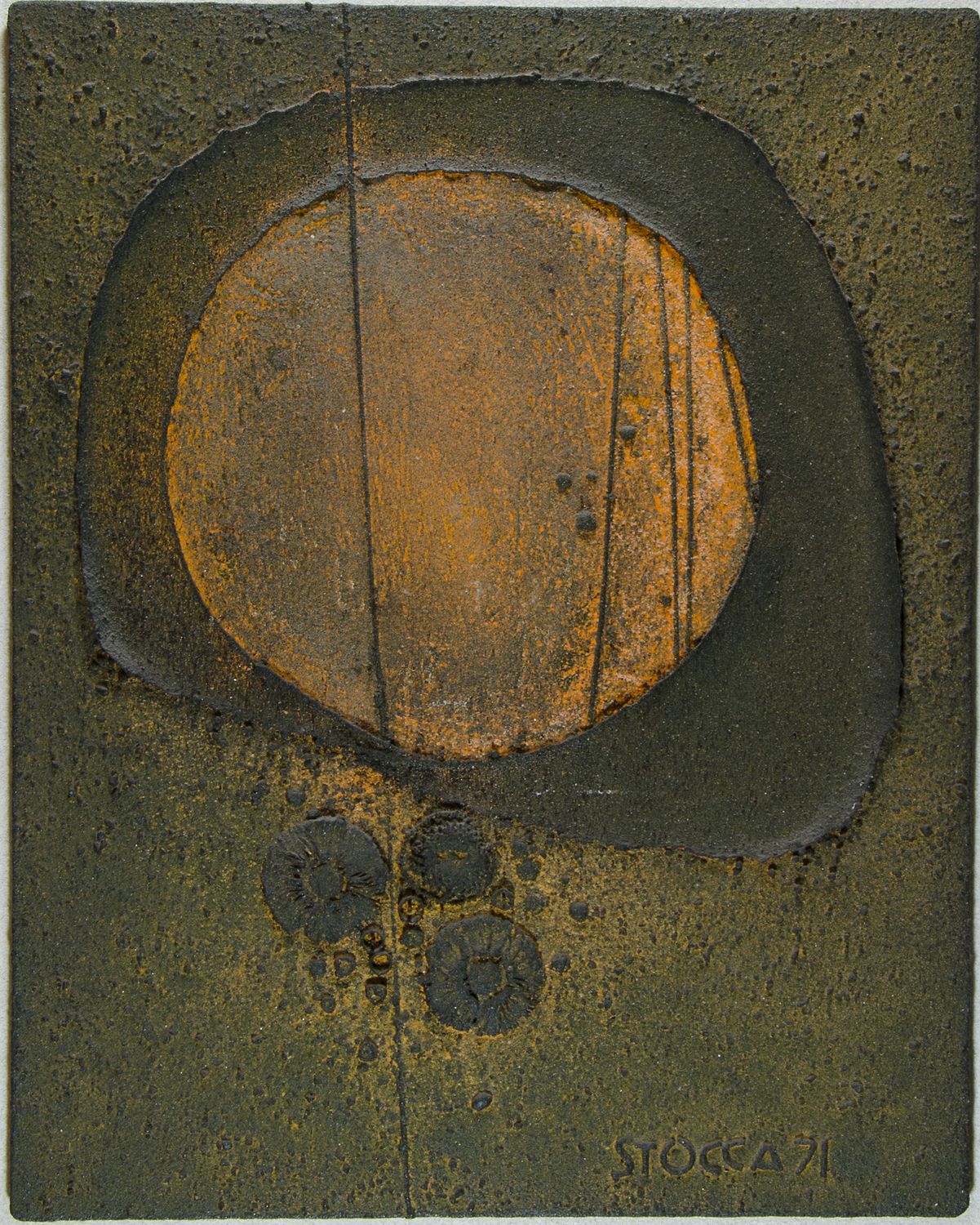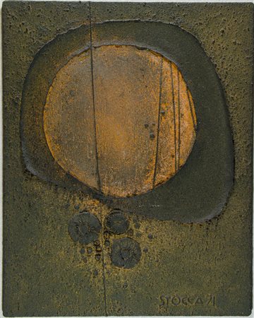 Sergio Stocca "Inseminazione" cm. 80x63 - materiale dipinto dall'Artista Firmato b. a d. e datato '71.