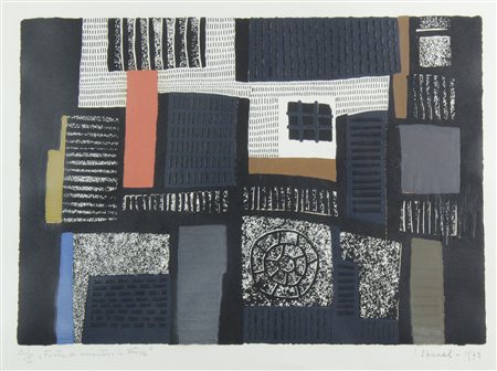 Luigi Spacal Trieste 1908-2000 "Festa di minatori in Istria" cm. 50x70 - xilografia a colori Firmato b. a d. e datato 1972. Esemplare II/X.
