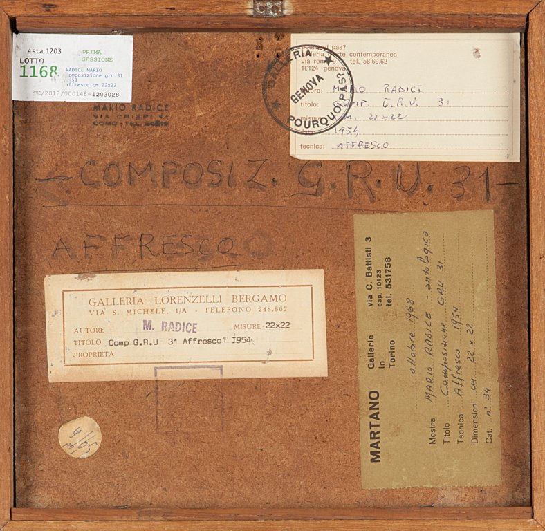 MARIO RADICE (1900-1987) Composizione GRU 31 1951affresco cm 22x22firmato in...
