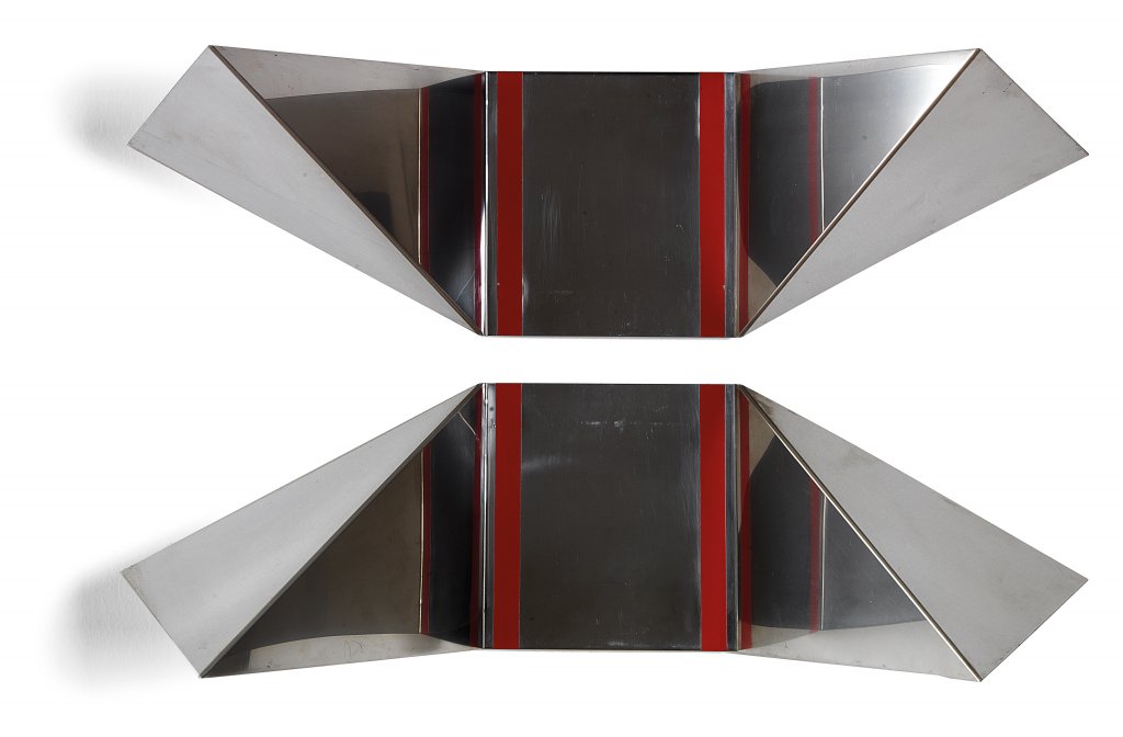 LORENZETTI CARLO (1934-) Sopra/sotto 1970acciaio inox, smalto rosso (due...