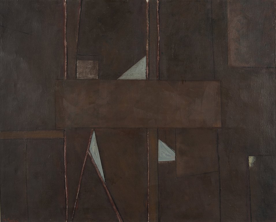 MAURO REGGIANI (1897-1980) Composizione 1957olio su tela cm 80x100firmato in...