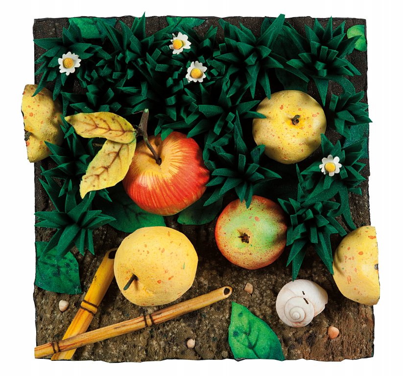 PIERO GILARDI (1942-) Mele e chiocciolapoliuretano cm 30x30firmato e titolato...