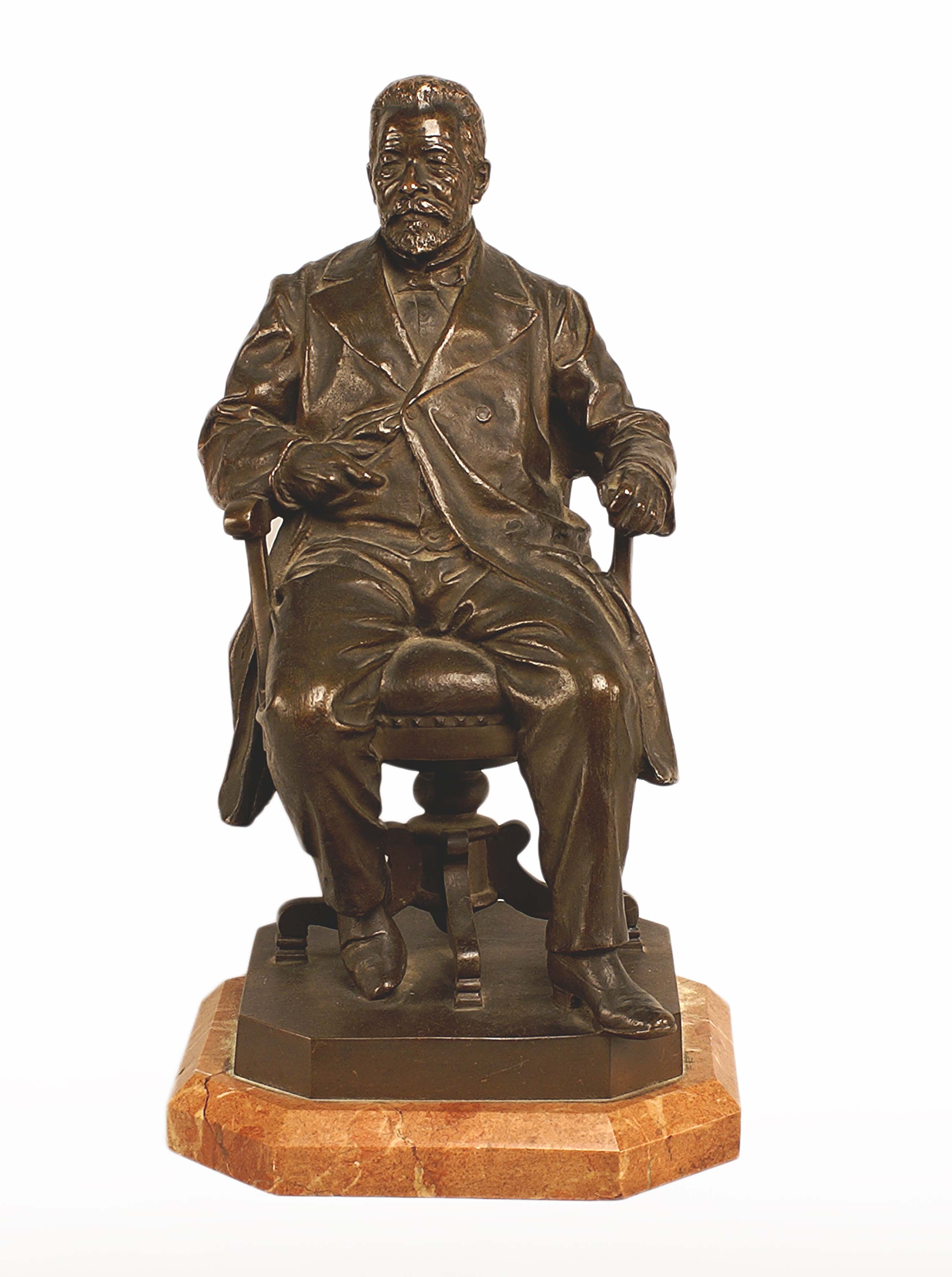 Josep Monserrat y Portella (Barcellona 1860 - 1923), gruppo in bronzo patinato raffigurante Don Pedro de Sotolongo y Alcantara, poggiante su base in marmo, cm. 37x20x20.