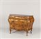 Commode in noce intarsiato e filettato in legno di bosso, di linea bombata,...