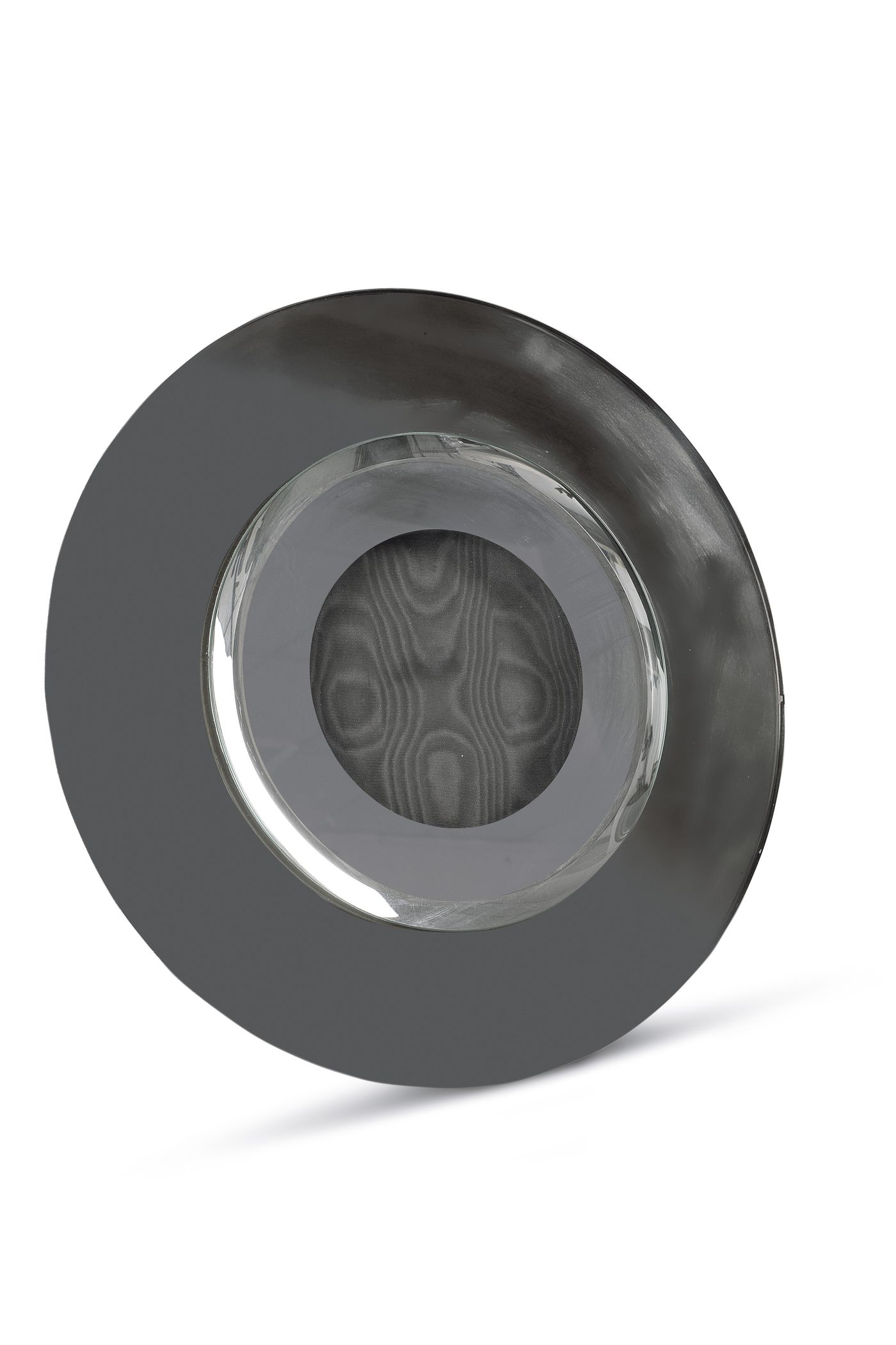 CRISTAL ART (ATTRIBUITO) - Portaritratti in cristallo molato e specchiato, montatura rivestita in scamosciato. Diam. Cm 32