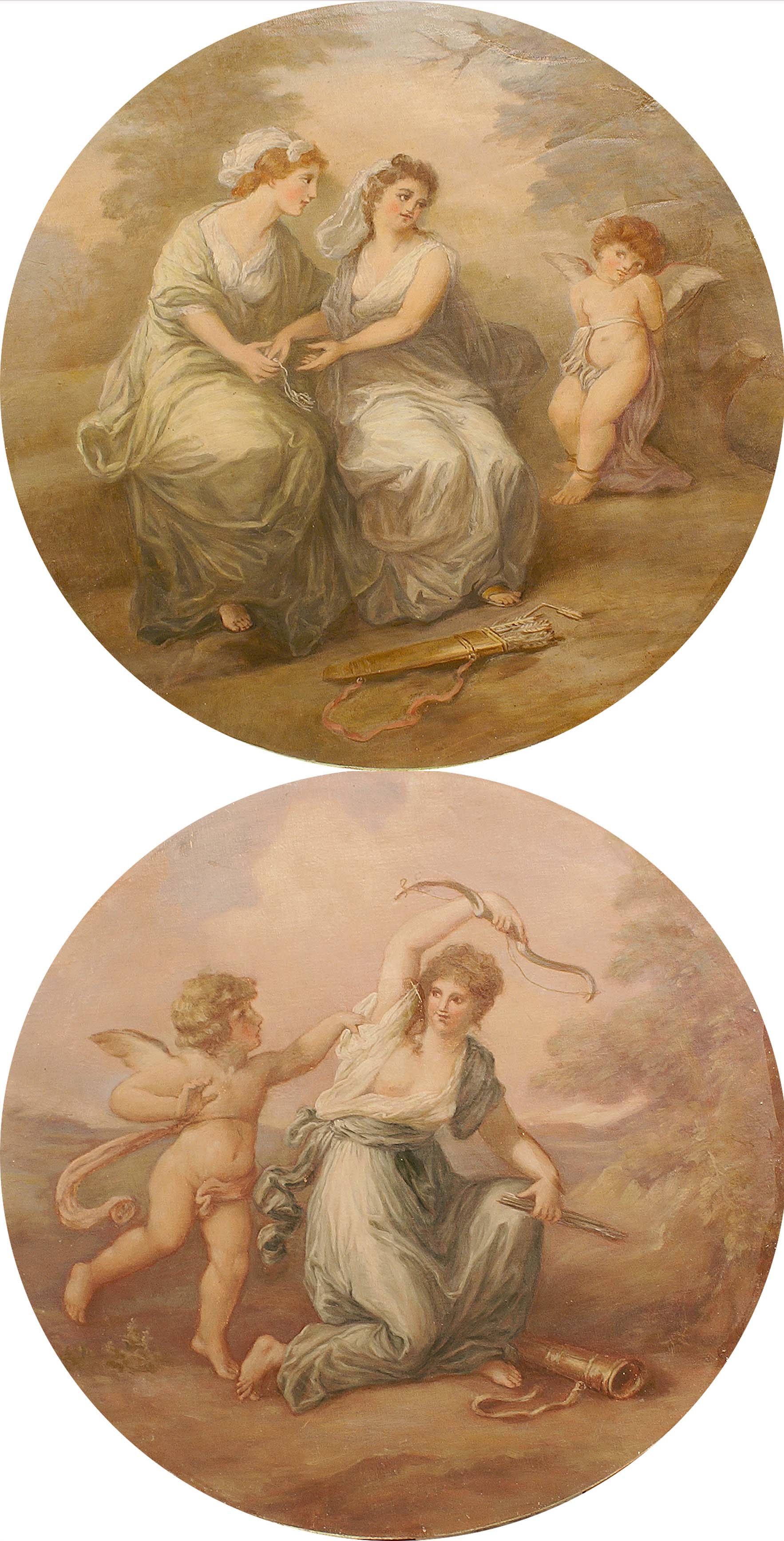 Lotto 199 | Scuola inglese della fine del XIX secolo, coppia di oli su tele di forma...