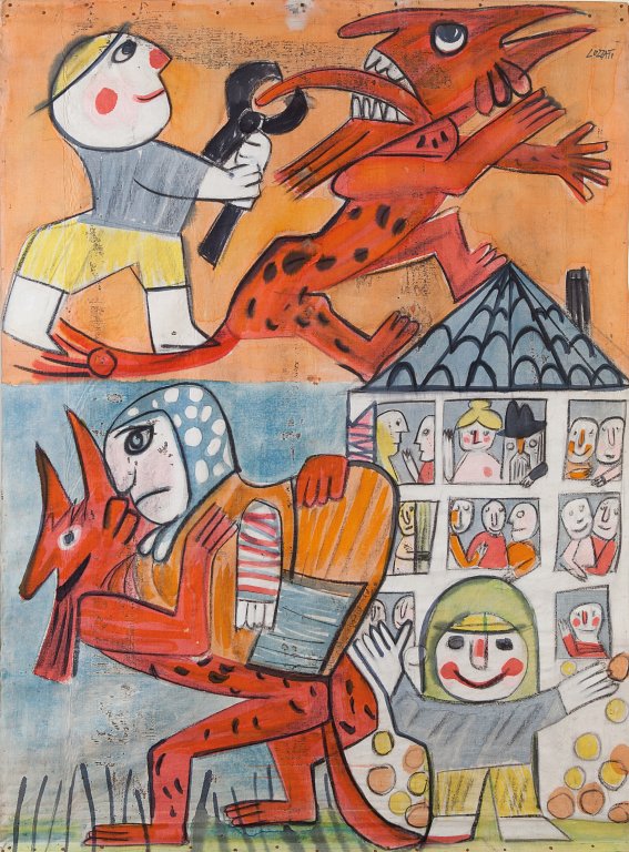 EMANUELE LUZZATI (1921-2007) Teatrino dei burattini (Anni Settanta)olio e...