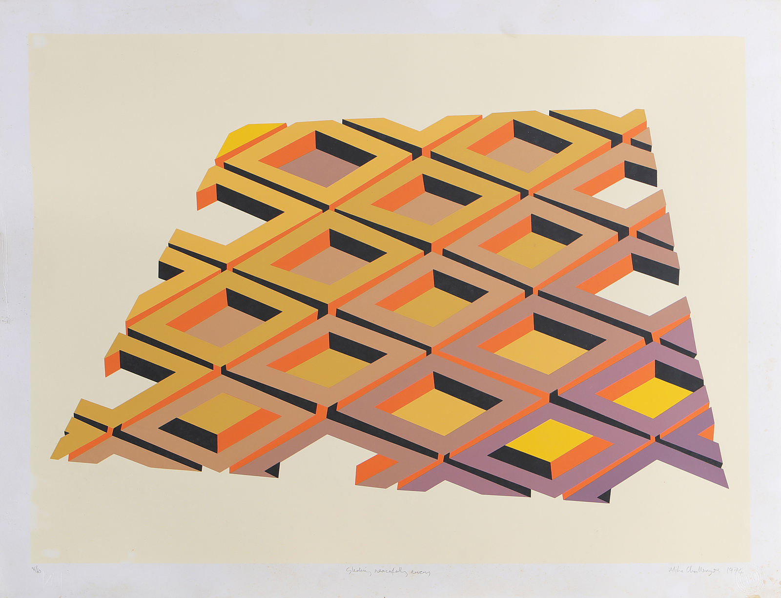 CHALLENGER MICHAEL (n. 1939) Senza titolo. . 1974. Litografia. Cm 82,00 x 63,00. 8/60. Firma, tiratura, titolo e anno in basso a matita. . Cornice presente
