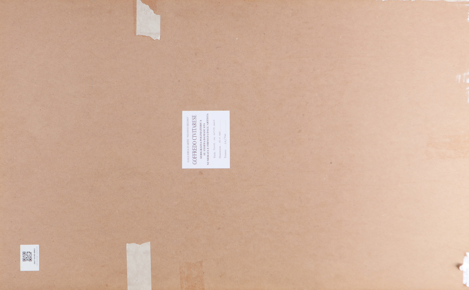CIVITARESE GOFFREDO (n. 1936) Figures with dead nature. Polymaterial silkscreen print. Cm 60,00 x 100,00. 47/150. Edition and signature lower in pencil. At the back descriptive label by the Nuovo Segno Art Gallery.