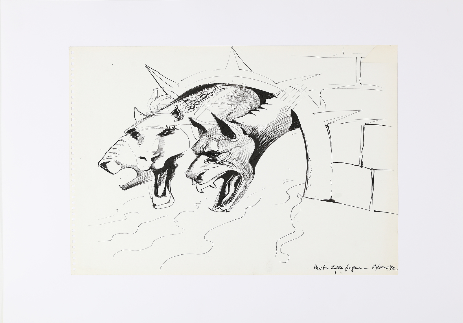 VAGLIERI TINO (1929 - 2000) La fogna. . 1972. Tecnica mista su carta. Cm...