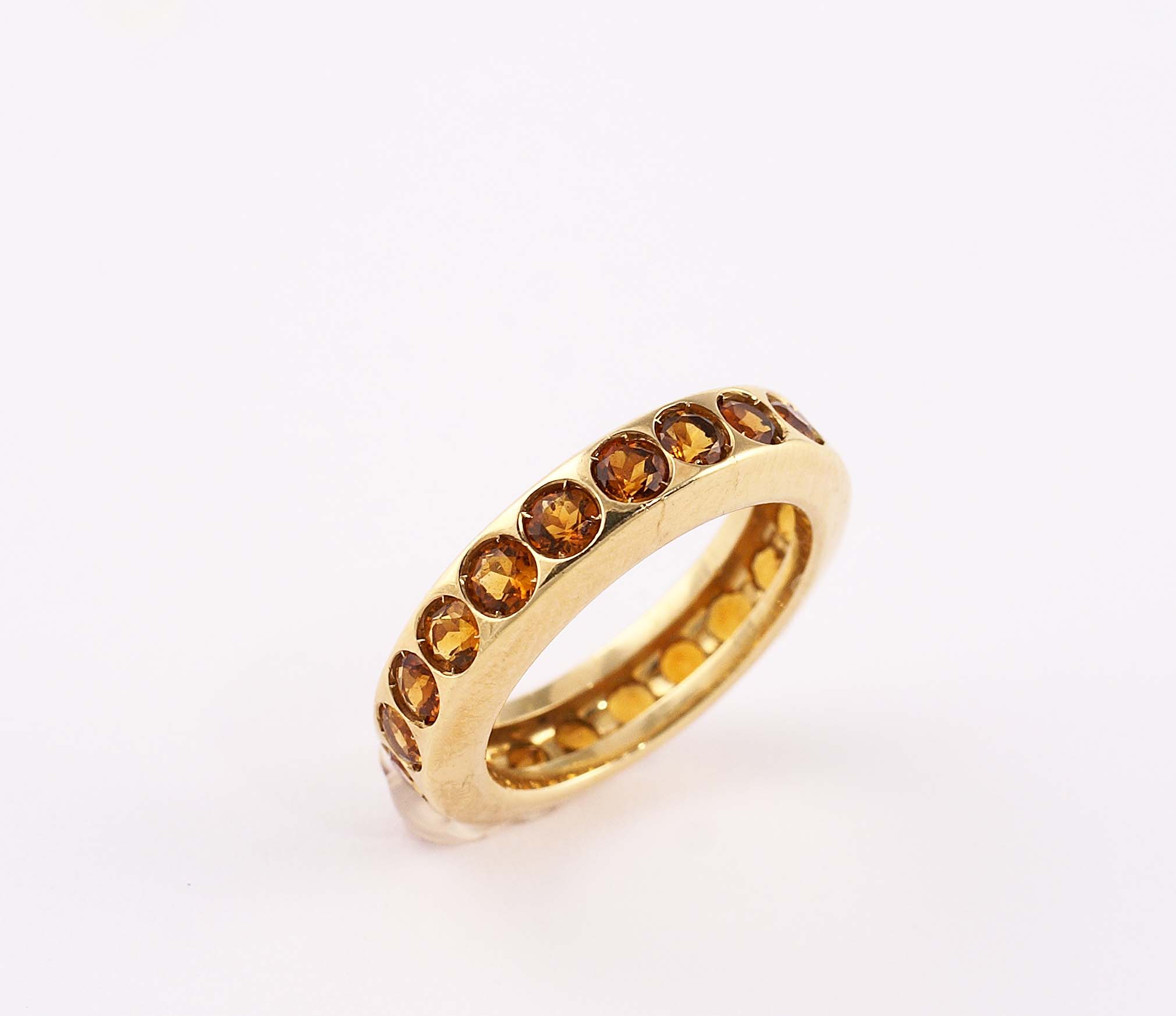Anello fede in oro giallo 18kt con incastonati quarzi citrini tondi, gr.9,2.