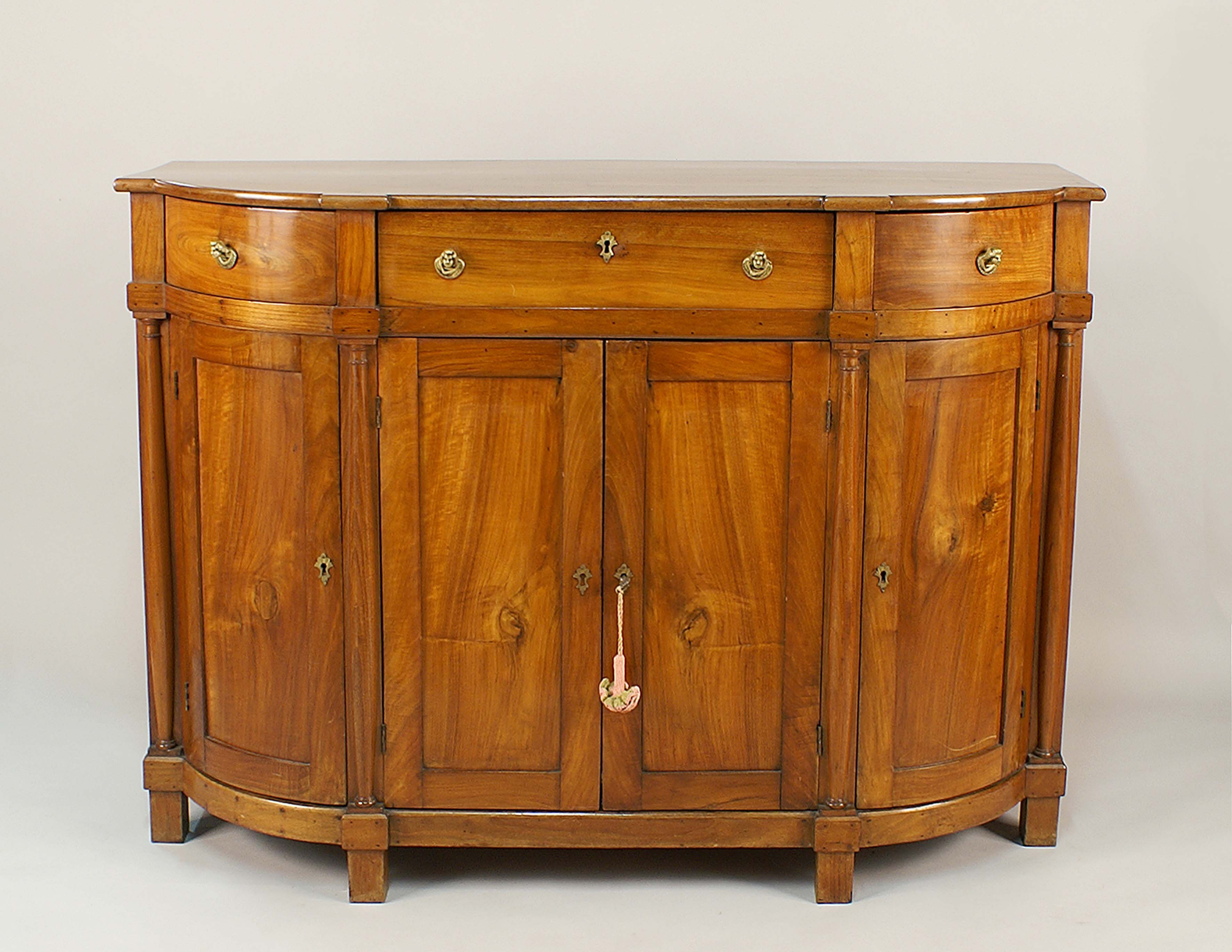 Credenza scantonata in noce, piano sagomato con tre cassetti e quattro sportelli sottostanti, Francia XIX secolo, cm. 107x150x59.